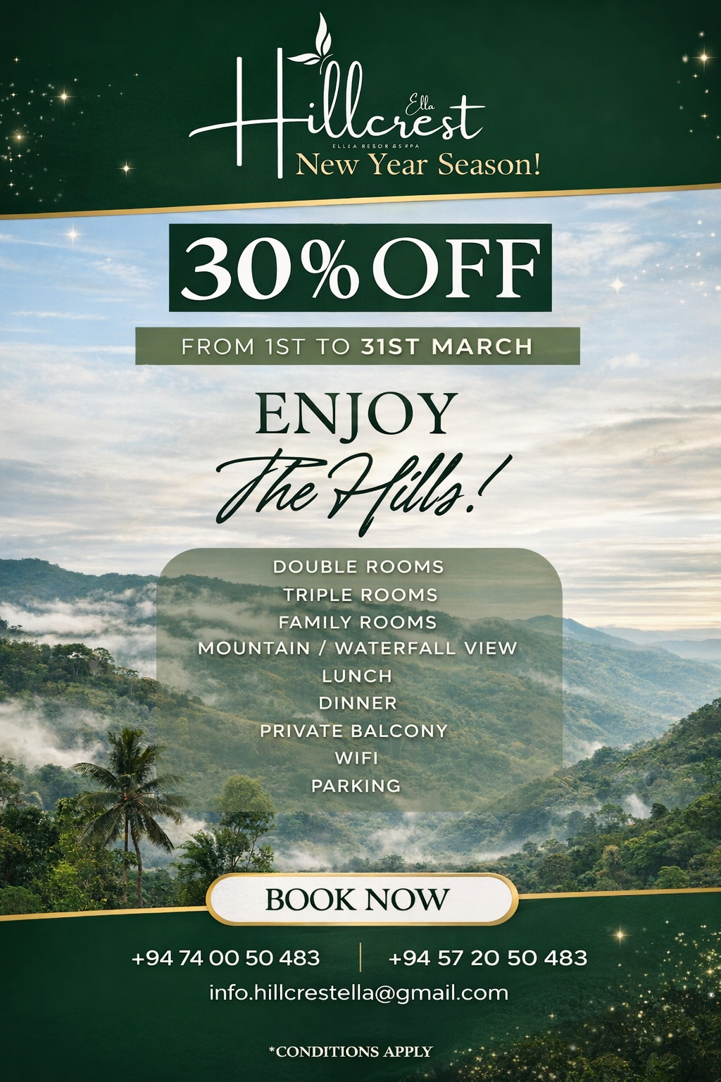 Relax in the hills of Ella with exclusive seasonal discounts on all room types.